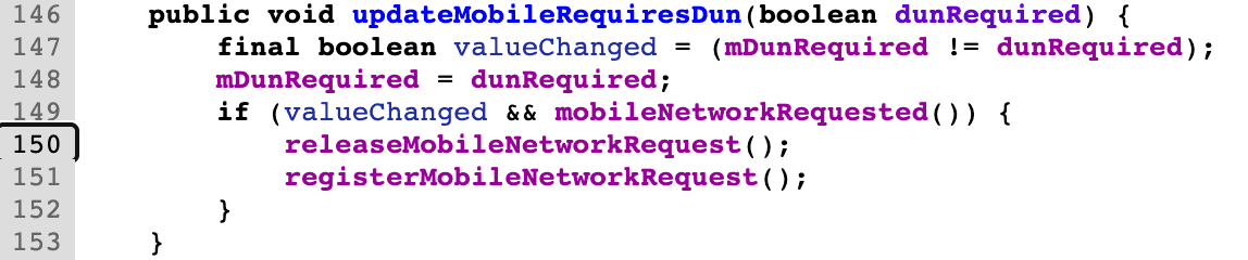 http://androidxref.com/9.0.0_r3/s?refs=updateMobileRequiresDun&project=frameworks