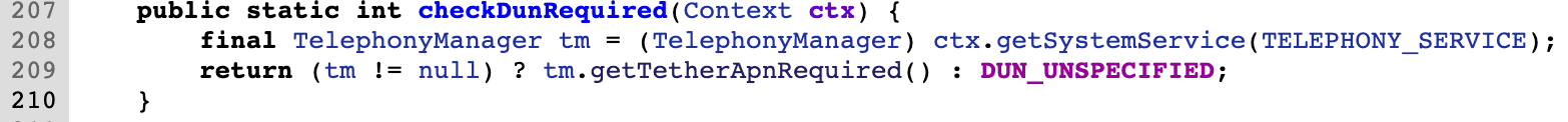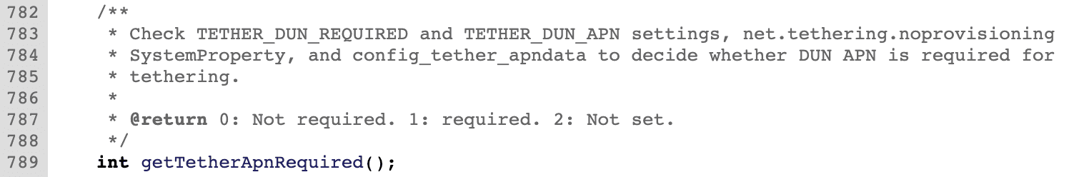 public static final String TETHER_DUN_REQUIRED = "tether_dun_required";TETHER_DUN_REQUIREDのチェックと設定