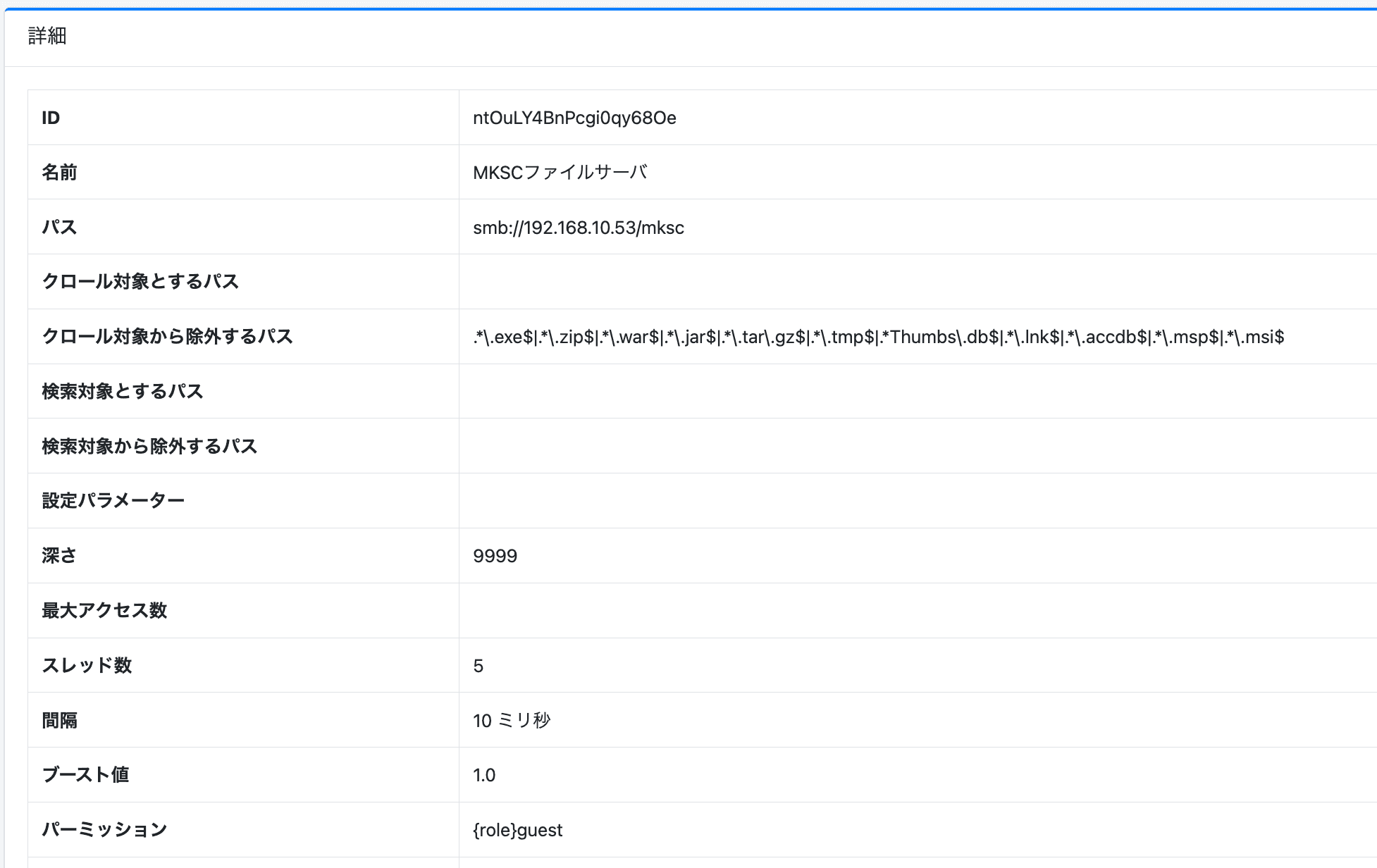 仮として社内のファイルサーバーのクロール設定だけ保存します。