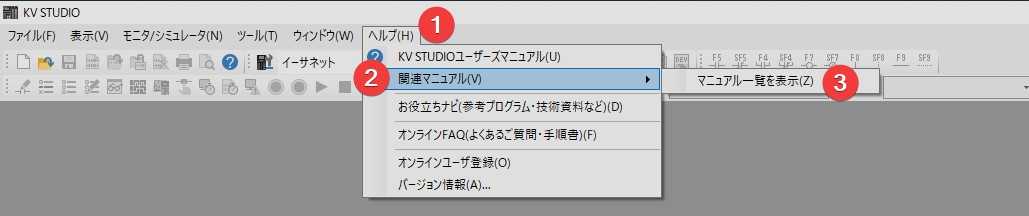 KV STUDIO => ヘルプ => 関連マニュアル => マニュアル一覧を表示にあります