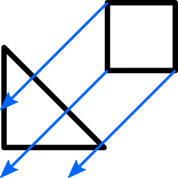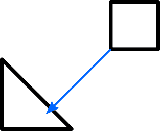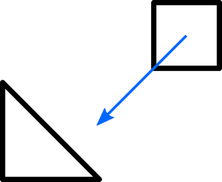 オブジェクトの当たり判定では、物体同士の重なりを検出する方法が有名です。しかし、重なりの判定だけでは衝突した箇所の座標を求めることができませんので、本記事では下図のように移動する四角形と静止している三角形の衝突点を考えていきます。
