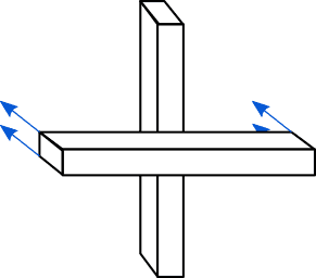 また、下図のように手前の直方体が奥の直方体に向かって移動する場合、手前の直方体の頂点がいずれも奥の図形の面や内部と交わらないため、衝突点を求めることができません。